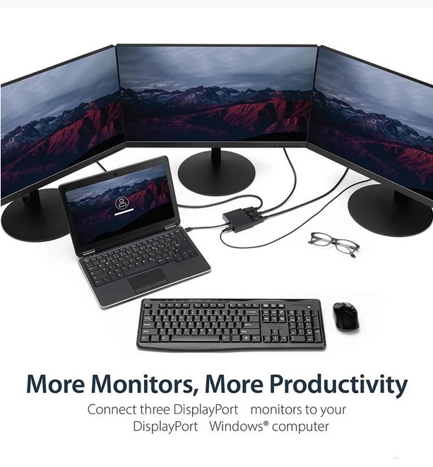2) se recomiendan conexiones directas DP para mayor fiabilidad y compatibilidad. Este divisor Displayport MST SST no funciona con ningún muelle.